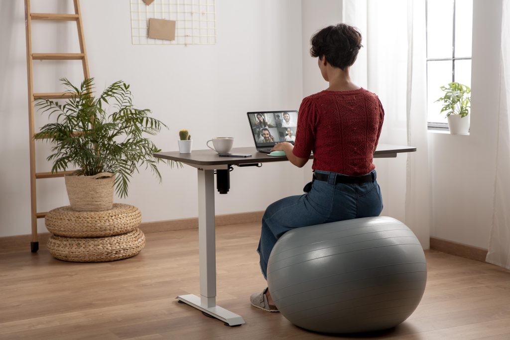 Sitting on a stability ball engages your core and improves posture. You can also use it for stretching or quick exercises during breaks.