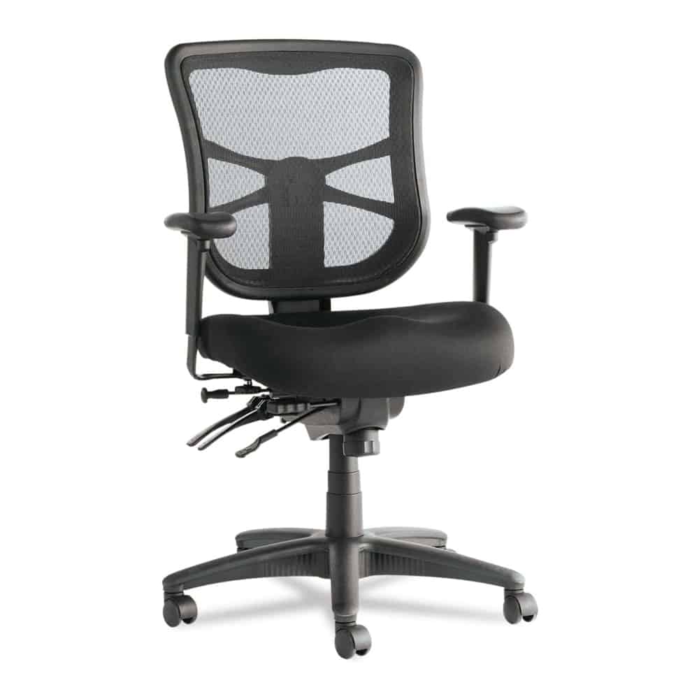 Been on the hunt for a multifunction chair? No problem. The Alera Elusion Series tilt chair is a strong contender for one of the best ergonomic products in the market. Excellent comfort, a reasonable price point, flexible height adjustment, and angle adjustment, as well as firm back support — these are just some of the perks of having this office chair.