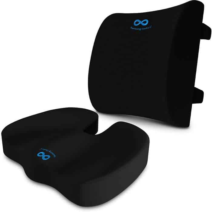 The overall build and materials used in this ComfiLife are unmatched. Its gel-enhanced memory foam keeps your back cool, the contoured structure provides comfort in all critical areas, and not to mention that it comes with a machine-washable cover and built-in handle for easy transport and portability.