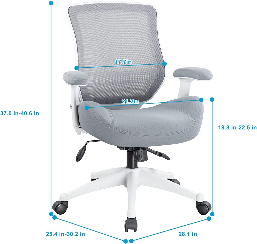 The most important aspect of ergonomic chairs is adjustability. Being able to sit at your preferred angle and at your preferred seat height allows you to work in the most optimal manner. The BOLISS Desk Chair is height-adjustable, with a base height of 18.8 inches and a maximum height of 22.5 inches.