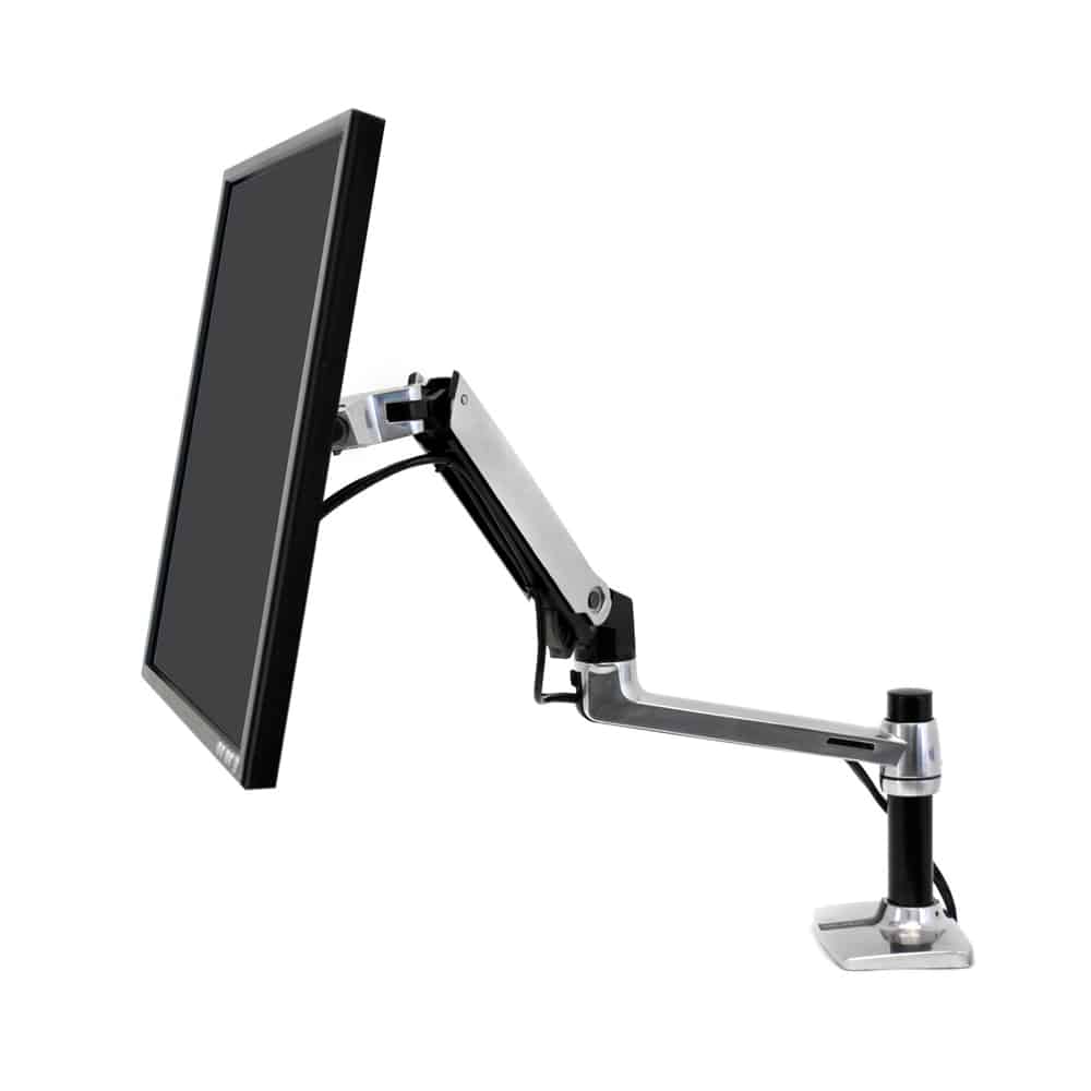 The sleek design of the Ergotron LX Monitor Arm makes it a desirable addition to any work table. Offered in three different color options (polished aluminum, black, and white), it easily and perfectly blends in any desktop, be it a standing desk, a regular office table, an at-home table, and more.