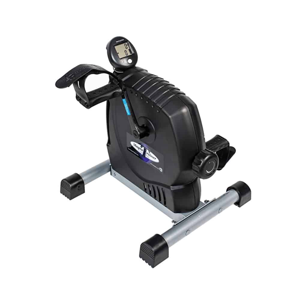 The MagneTrainer is bidirectional, meaning you can pedal forward or in the reverse direction, enabling you to maintain balance in your leg muscles. Its wide resistance range and smooth pedal motion make this mini-bike exerciser excellent for physical therapy and can even be used to work out your arms, with its molded hand grips for safe and comfortable hand and feet pedaling.