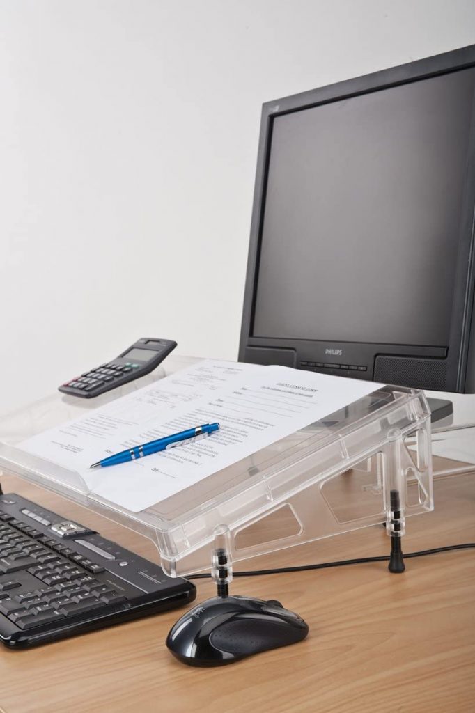 You might notice that the MicroDesk Document Holder has enough room for more than just documents and papers. The 22-inch surface can hold a calculator, your writing materials, or a cellphone so you won’t have to leave your desk; everything you need is within arm’s reach. The transparent design makes it visually compatible with any desk while giving the appearance of a more spacious tabletop.