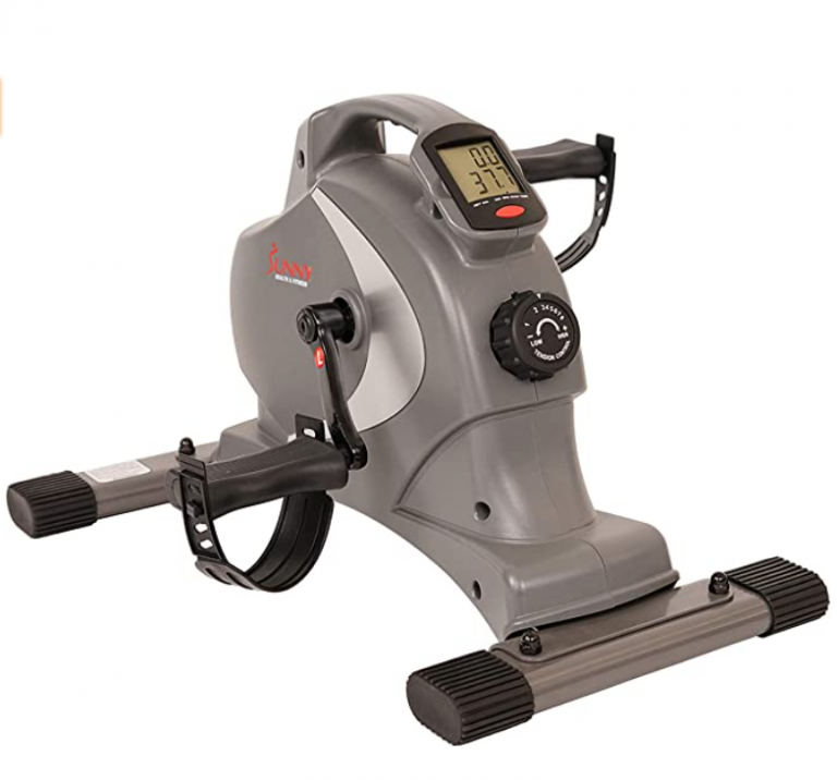 If you want to start your “working while exercising” journey, you can purchase the Sunny Health and Fitness SF-B0418 Magnetic Mini Exercise Bike on Amazon.