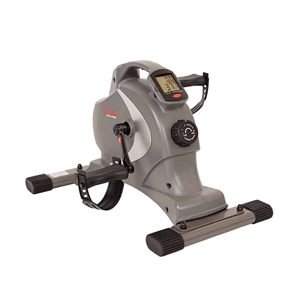 That’s exactly what you can do with under desk ellipticals — sit comfortably doing your work while giving your legs some action. Find out more about desk bikes in our complete guide. But in this review, we’ll look into the Sunny Health and Fitness SF-B0418 Magnetic Mini Exercise Bike.