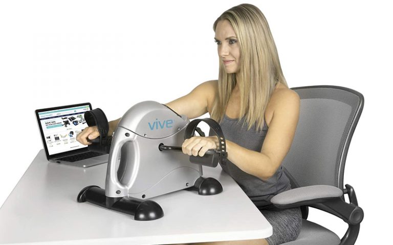 One such machine is the Vive Pedal Exerciser. Vive claims that this particular pedal exerciser model is lightweight and portable, compact enough to fit under a desk. Ideal for low-impact workouts, the Vive Pedal Exerciser functions both as a muscle-toning and calorie-burning device. Using the Vive Pedal Exerciser, stationary exercise has become possible.